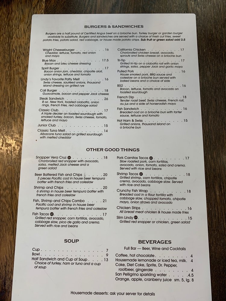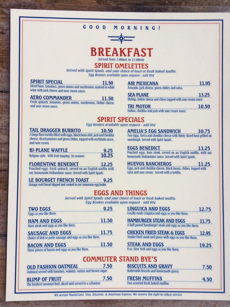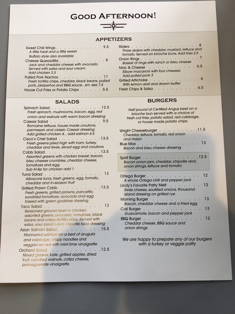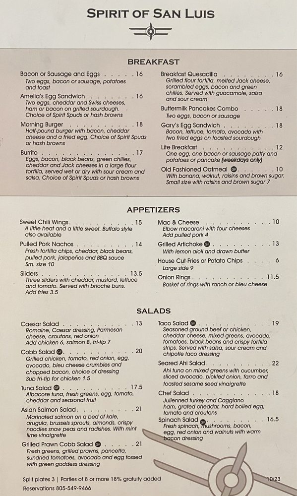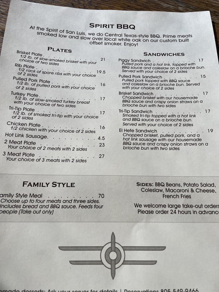 Spirit of San Luis Restaurant Menu